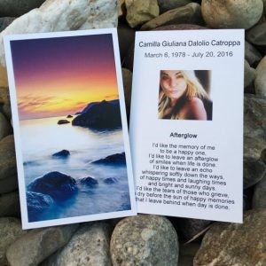 Here at FuneralPrints.com, we honor all members of the armed forces and first responders. If your loved one has fallen in the line of duty, we would like to honor their sacrifice by printing funeral cards free of charge. Please visit our Fallen Heroes page to learn more.